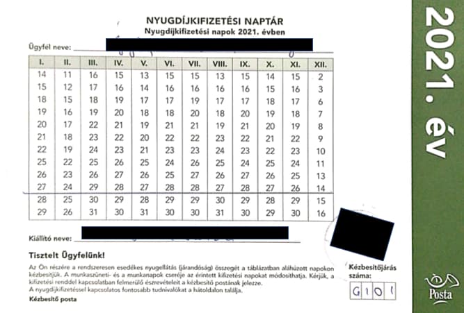 A postai kifizetések esetében minden hónapban 12 munkanapon át viszi ki a havi rendszerességű nyugdíjakat, erről az ún. nyugdíj postai kifizetési naptár 2021-ben tájékozódhatnak az érintettek, amit a Magyar Posta Zrt-től még 2020-ban meg kell kapniuk – derül ki a Profitline összefoglalójából.